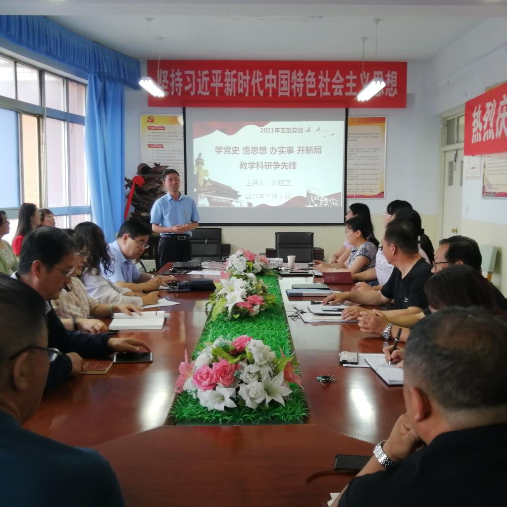 教工党支部书记朱睦正以“学党史 悟思想 办实事 开新局——教学科研争先锋”为题,围绕学党史,艰苦奋斗守正创新;悟思想,坚定信念凝聚力量;办实事,教学科研争当先锋;开新局,齐心协力谋划发展四个方面,结合教学科研工作,提出要以党史学习教育为契机,将学党史、悟思想、办实事、开新局融入日常、抓在经常,推进教学改革与研究活动;科学修订学科专业发展规划,调整专业设置方案,不断优化学科专业结构;优化人才培养过程,紧紧围绕提高员工的综合素质和可持续发展能力来构建人才培养模式;积极推进实践教学改革,按照应用型人才培养目标的要求,完善实践教学体系;积极创造条件开放实验室,开设综合性、设计性、创新性的实验项目。