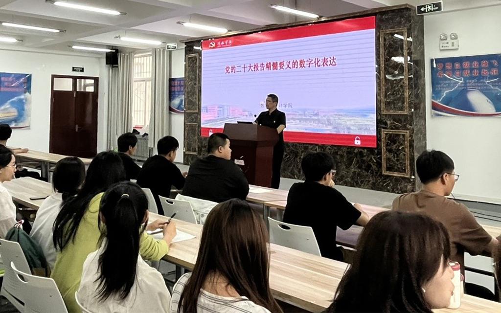 报告会上,党委负责人从数字化表达角度分享了学习体会,聚焦“一个主题”“中心任务”“两个结合”“三件大事”“四个方面里程碑意义”“五个牢牢把握”等内容;解读了“马克思主义中国化时代化”“中国式现代化五个方面”等新观点、新论断;重点围绕“实施科教兴国战略,强化现代化建设人才支撑”与同学们进行了交流。