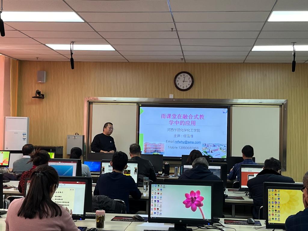 任雪峰围绕“雨课堂在融合式教学中的应用”为主题,从雨课堂准备工作、课堂教学、课后学习反馈三个方面分享如何利用雨课堂进行融合式教学,从雨课堂新课创建、课件制作、课堂授课、课后习题、在线考试和后台数据等实际操作角度协助教师更详细的了解雨课堂各项功能,帮助实现智慧教学。培训过程中,参训教师积极互动,结合自身使用情况与授课教师、同事之间现场交流,提出优化方案,共同研讨交流,气氛热烈,培训效果显著。